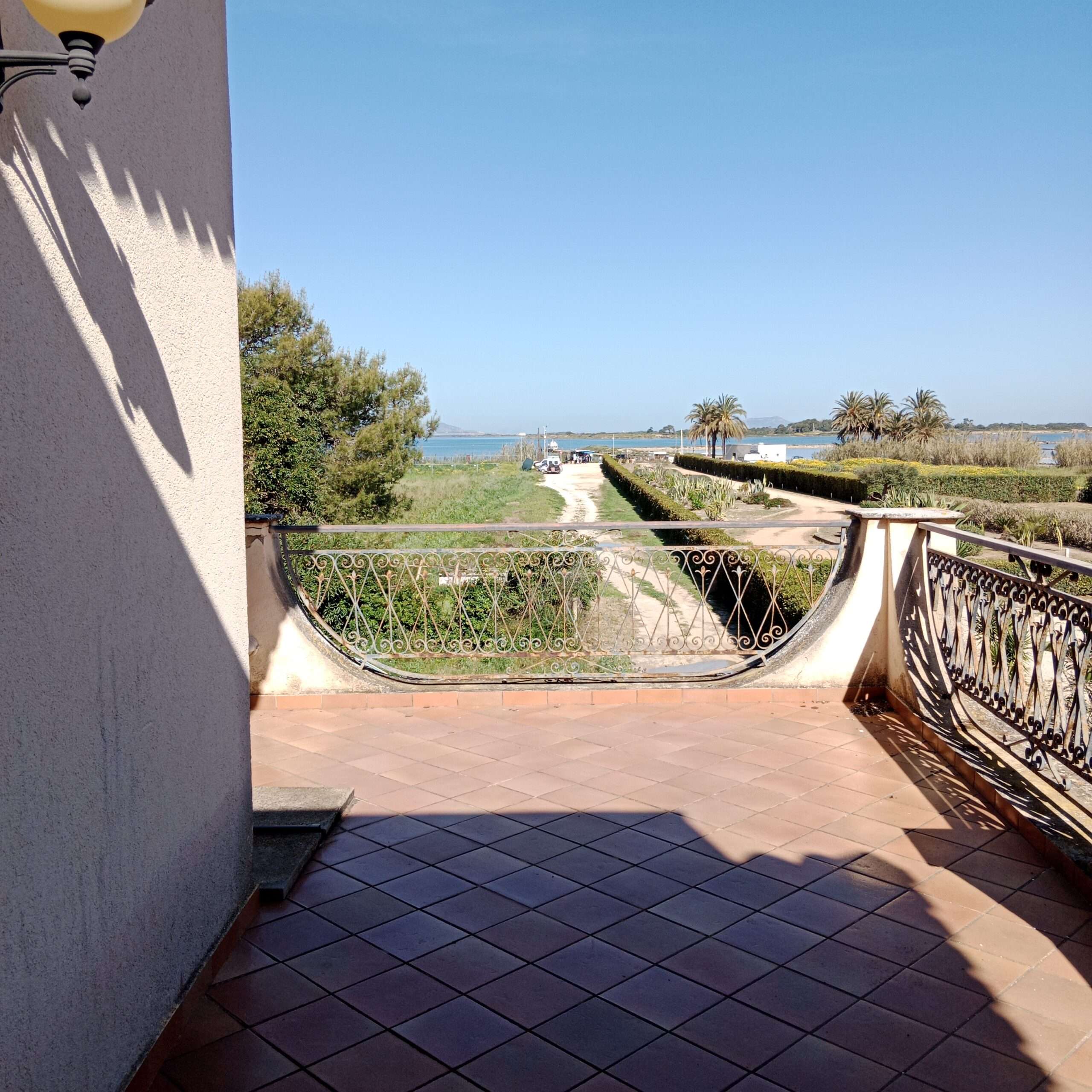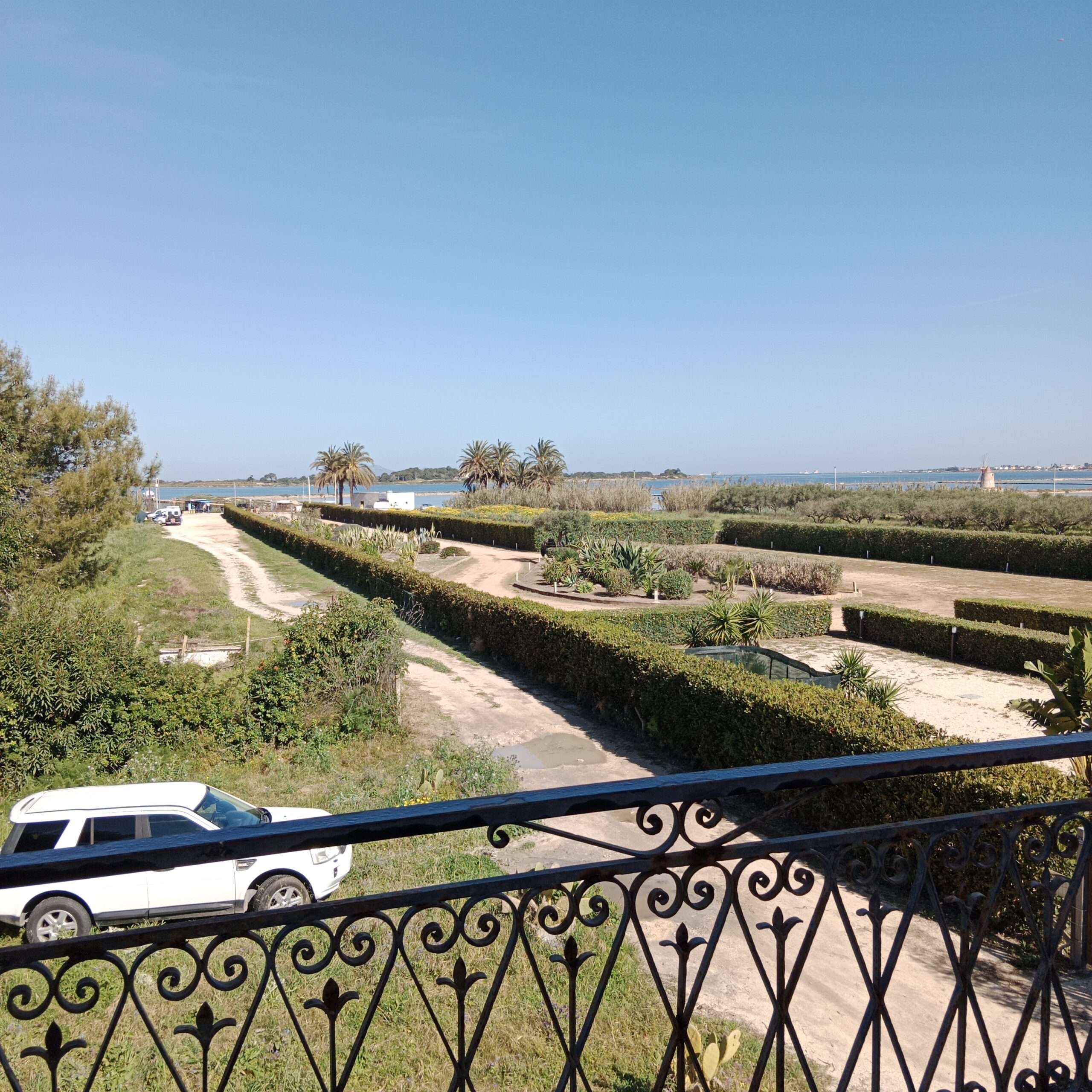Vom Balkon aus hat man direkte Meersicht auf die Lagune und die Salinen von Marsala.